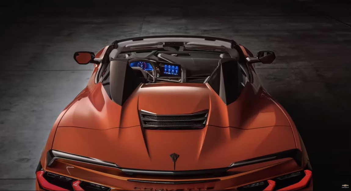 The Stingray convertible features a power-retractable roof that flows seamlessly into the body design.