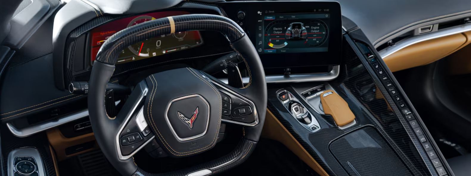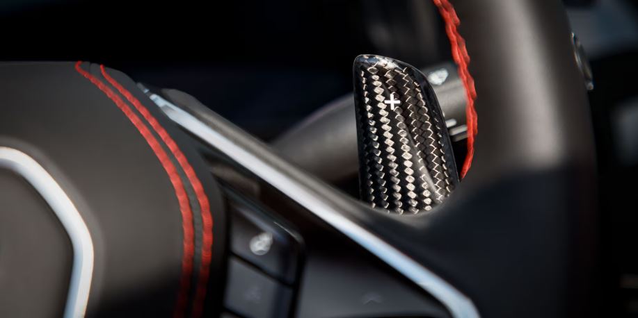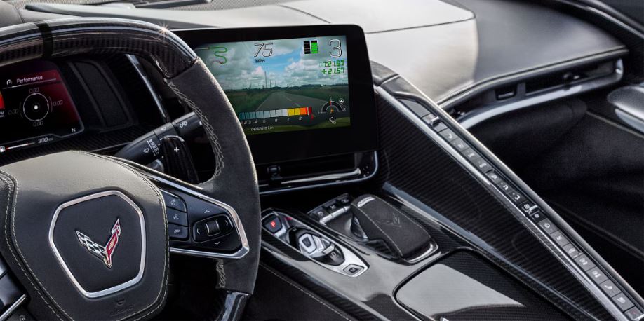 You can manually upshift or downshift your Corvette with paddle shifters on the steering wheel.