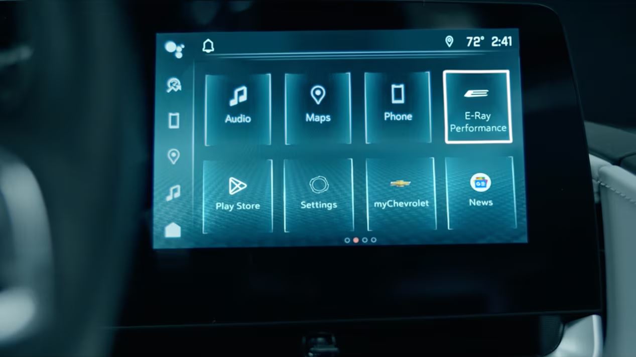The E-Ray App, conveniently located on the centre screen, gives you a quick look at even more performance data, RWD vs. FWD power and vehicle information.
