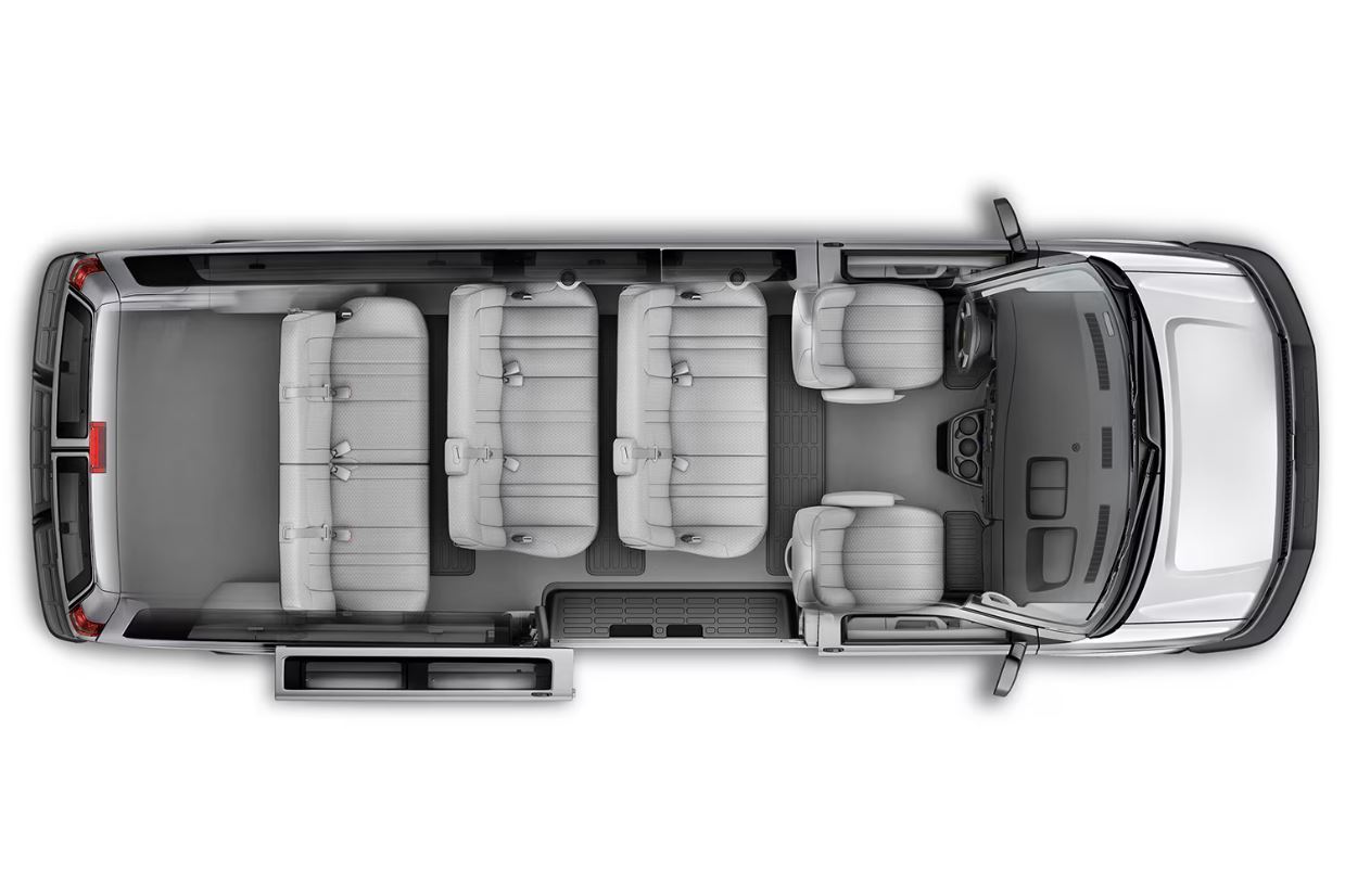 The spacious Express Passenger Van is designed with multiple seating configurations that allow you to comfortably fit your group and still have room for luggage or additional cargo.